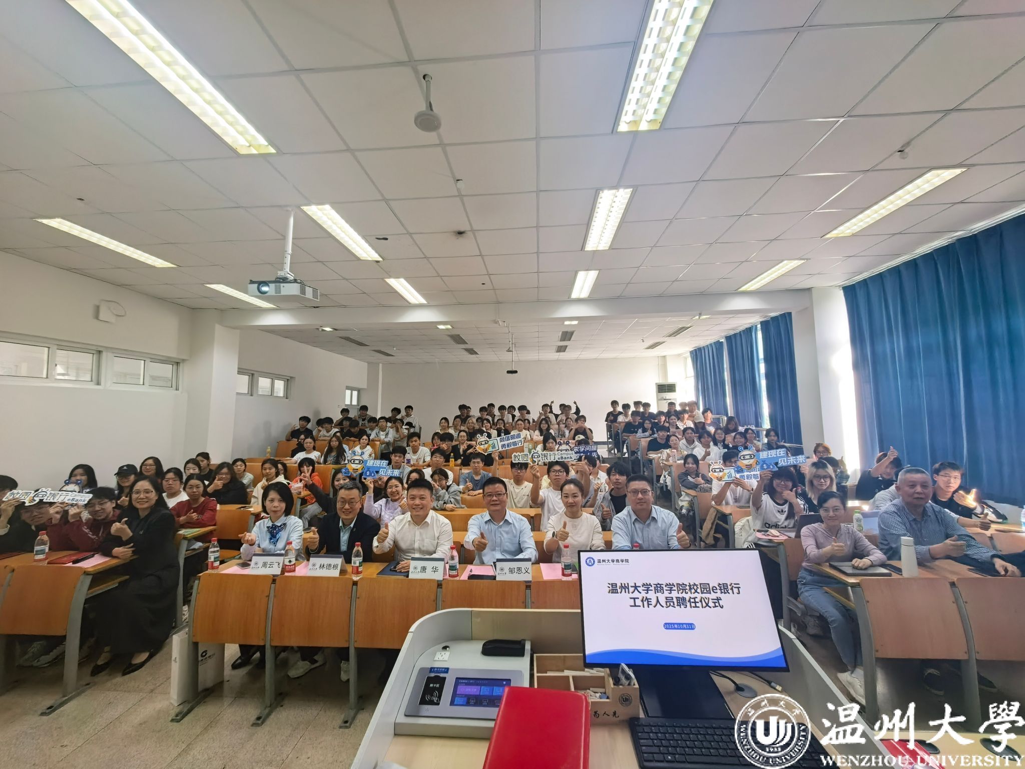 校园e银行工作人员聘任仪式在北2-411教室举行。本次仪式别开生面地融入2025级金融工程专业导论课堂,全体新生现场观摩。中国建设银行温州市分行网络金融部总经理邹恩义、国产自拍