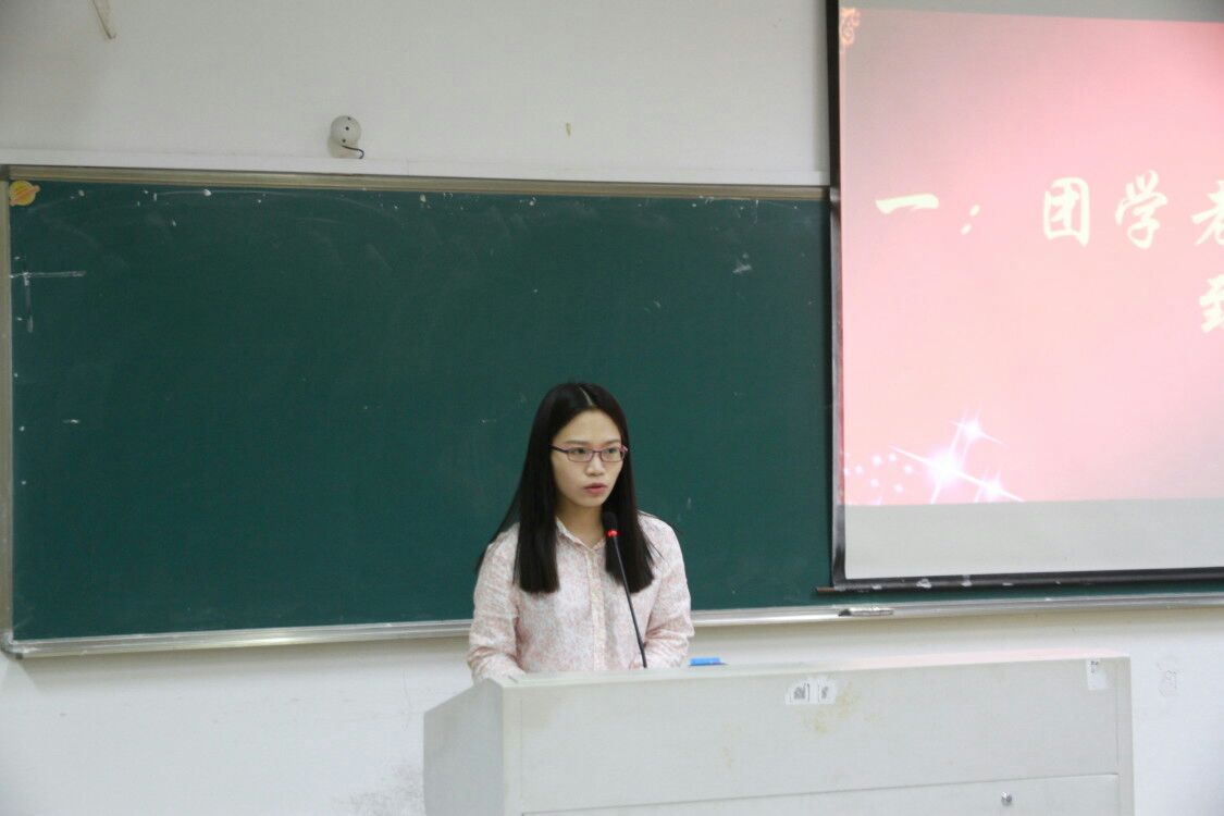 王心怡同学代表团学老部长致辞,她从自己的商院团学经历出发,给大家提出三点要义:见自己、见天地、见众生。她指出,责任就是担当,责任就是付出,同学们要学会平衡学习与工作。她为同学们提了许多建议,并且预告了接下来精彩的团干培训,让同学们充满期待。