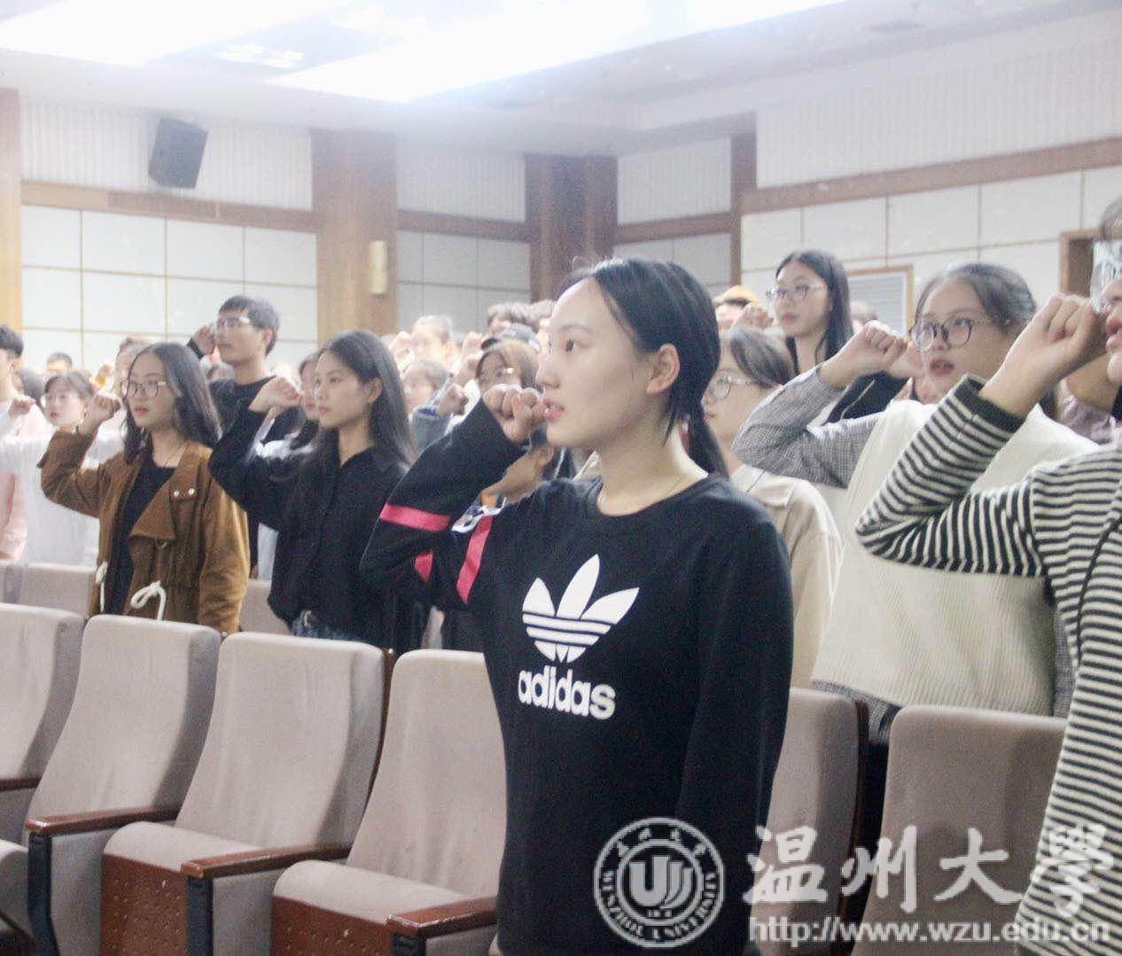 会的任职情况并向任职同学颁发聘书。大会第五项由副主席曾义鹏同学带领全体团学成员进行宣誓,庄重而又充满激情的宣誓传达着每一个人心中对于团学的期待与热爱。最令大家期待的时刻是部门才艺展示,每个部门都用最饱满的热情向大家献上了难忘的表演。最后,团学大会在欢声与笑语中拉下了帷幕。