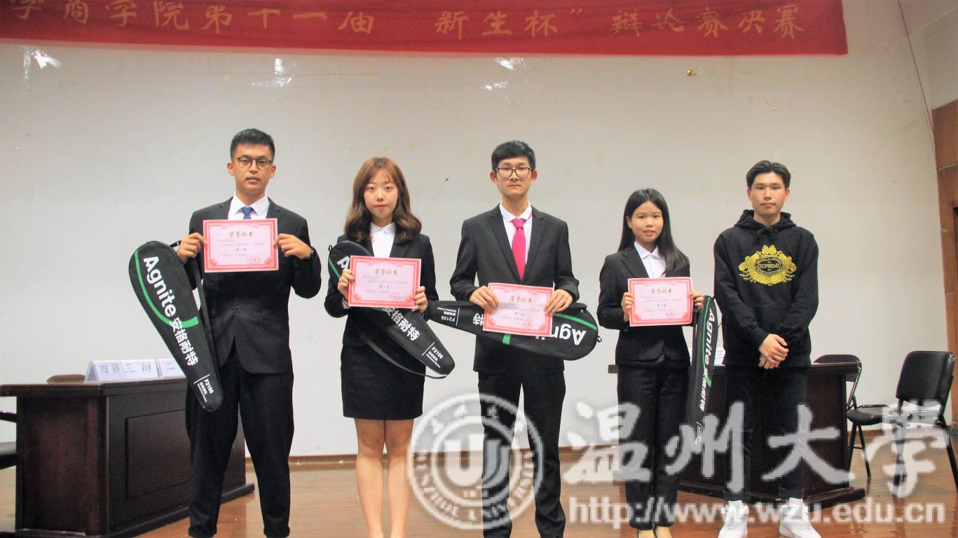 最后,各位评委对本次辩论赛做出点评,他们首先肯定了辩手们在比赛上的精彩表现,同时也进行了更深层的指导。在各位评委的严谨讨论后,辩论赛的比赛结果揭晓:温大男神女神队荣获第一名,谈笑风生队荣获第二名,走进浙南产业集聚区队荣获第三名,来自温大男神女神队的尉帅辉同学荣获最佳辩手称号。
