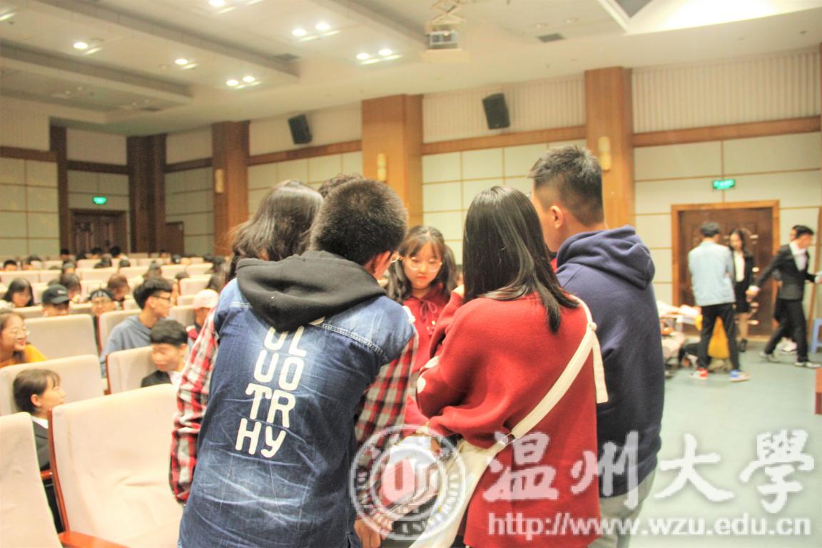 追求机遇的最佳选择”,正方为红鲤鱼绿鲤鱼与驴队,反方为谈笑风生队。第二场辩论赛的辩题为“当AI在辩论上战胜人类时,我们应该感到可喜还是可悲”,正方是走进浙南产业集聚区队,反方是温大男神女神队。在比赛过程中,台上选手个个锋芒毕露,自信从容,成员间默契十足,互相配合。在各个环节中,双方辩手引经据典,旁征博引,唇枪舌战中尽显商院气魄,引得台下掌声阵阵。